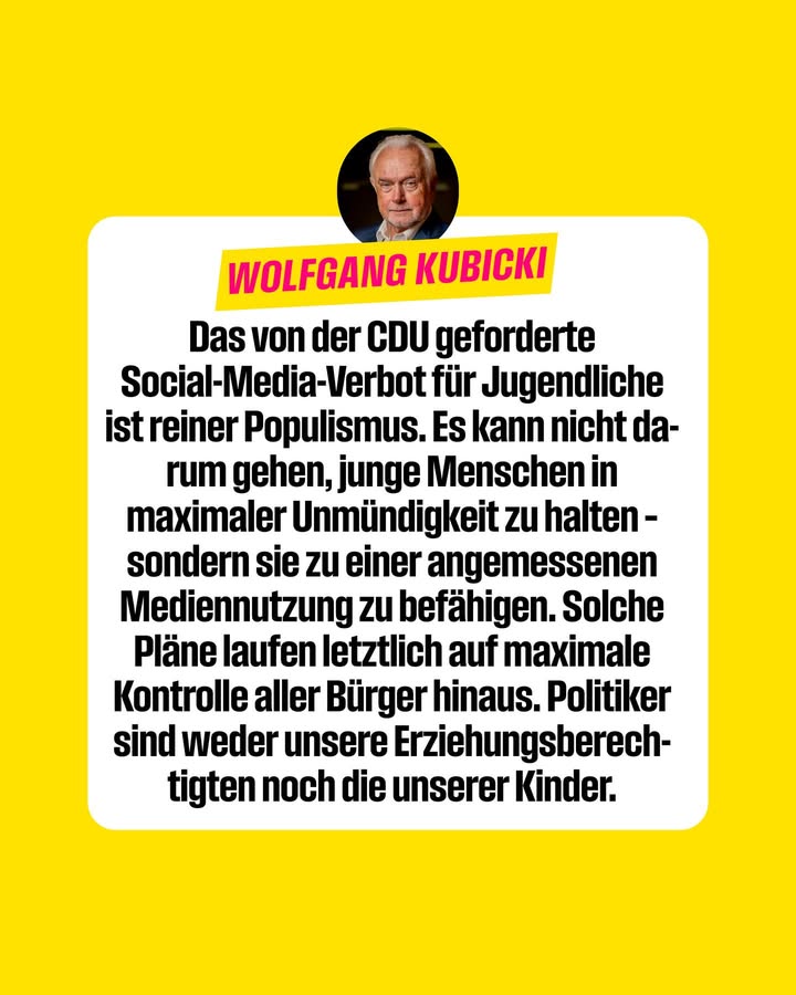 Wolfgang Kubicki zu dem geforderten Social-Media-Verbot der CDU.